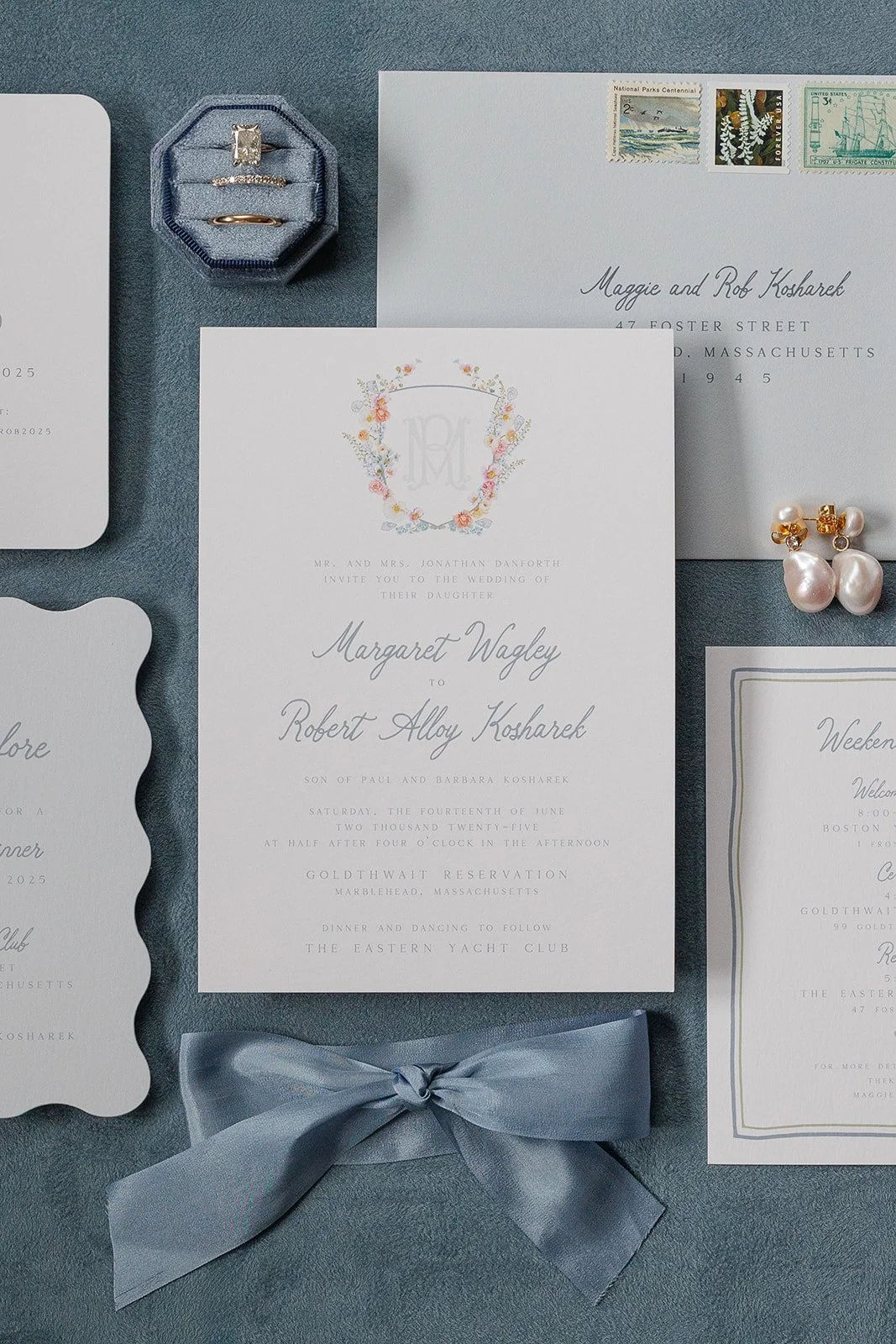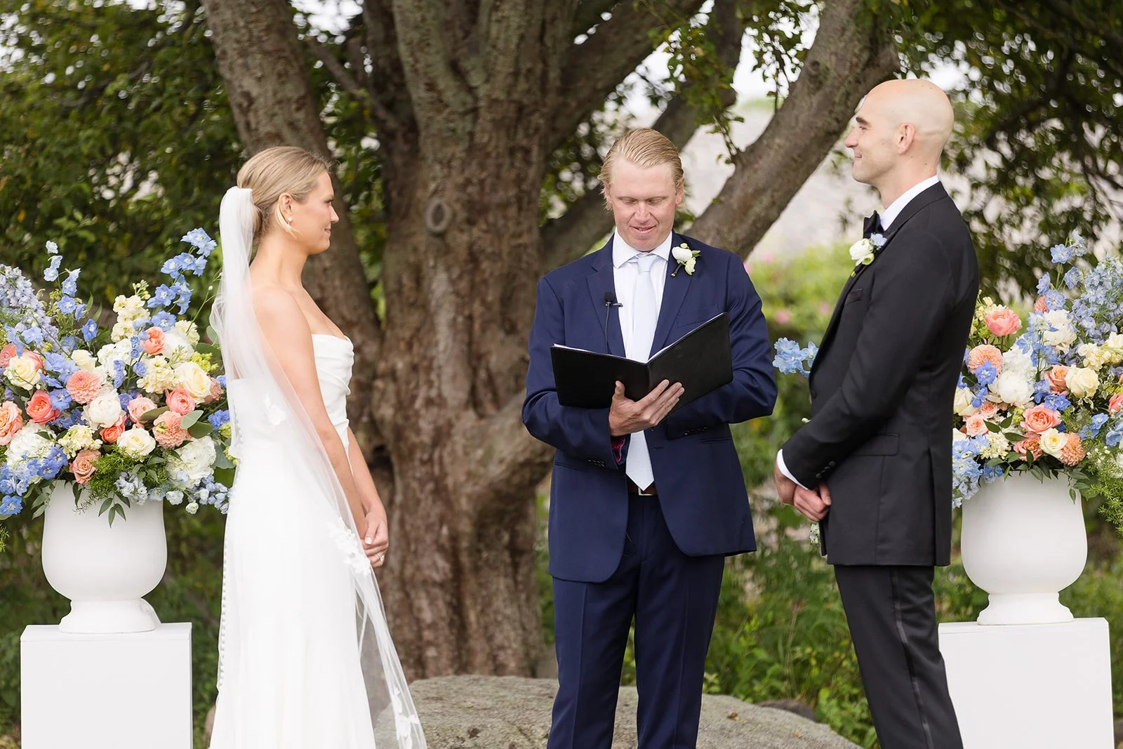 Maggie and Rob’s June wedding at the Eastern Yacht Club in Marblehead was nothing short of magical. Their ceremony at Goldthwait Reservation was officiated by Maggie’s brother, and in a fun twist, we realized he had officiated another wedding I had planned, a small world moment that made the day even more special.